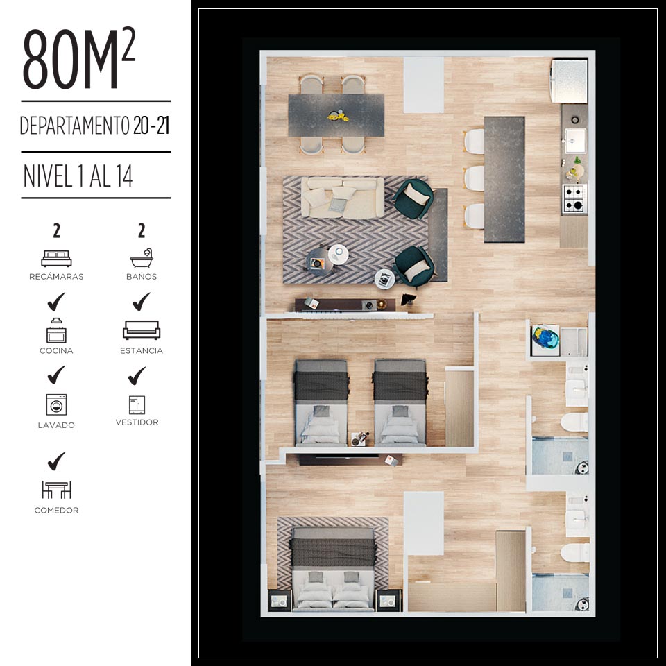 Arquitectura de vanguardia, distribución inteligente y acabados de calidad excepcional que transforman tu entorno y te brindan estilo de vida único.