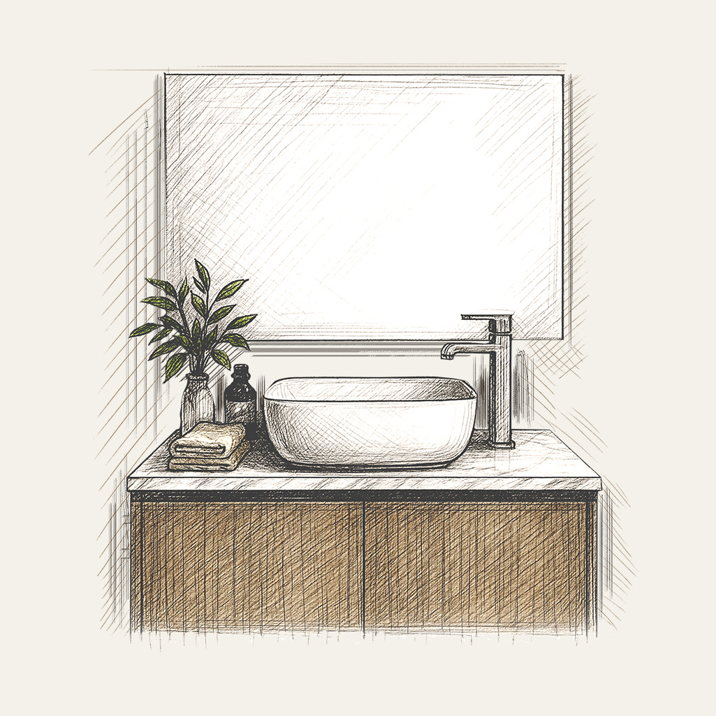 Un cancel de cristal templado abre la vista, y una sensación envolvente de ligereza. La grifería de alta gama, de diseño y acabado brillante, junto con la carpintería en los muebles de baño, consolidan una arquitectura de sofisticación y absoluto confort.